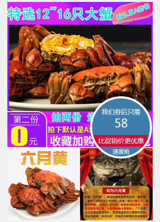 【拍两件】空运送达,鲜活大闸蟹现货现发!买8只送8只,共16只!同等价格,我们的螃蟹要比别人的大,肉质鲜嫩,只只鲜活,黄膏肥厚,滋味鲜美,新鲜直达,送亲友,送领导都行,足斤足两,死蟹包赔!