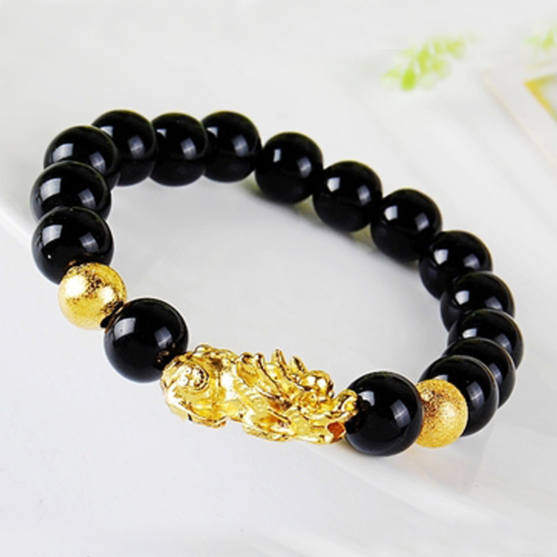 好运连连石榴红沙金色手链手串男女简约时尚皮丘立体设计手串礼物