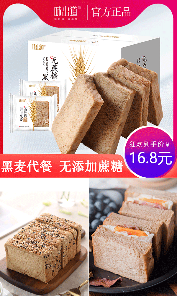 【推荐理由】营养饱腹,无蔗糖又低脂!才是早餐该有的样子啊!味出道全麦面包!线下1斤29.8!咱只要9.8啦!口感绵实,易饱腹!还是独立包装,出行装包里,随时都能吃!