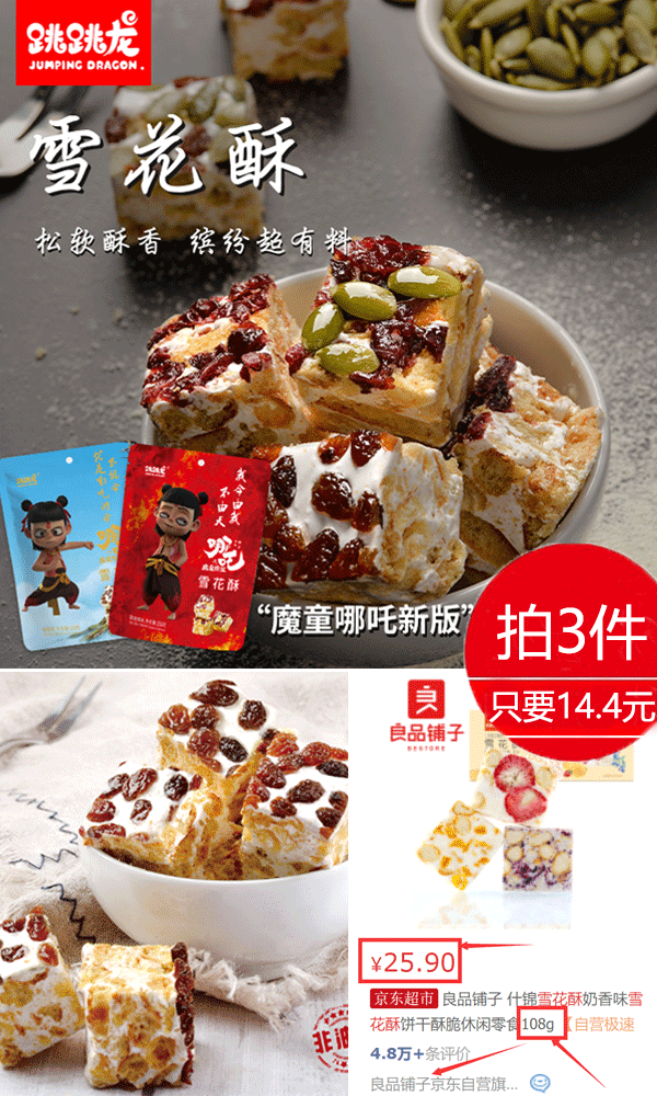 【拍3件14.4元】哪吒装蔓越莓雪花酥