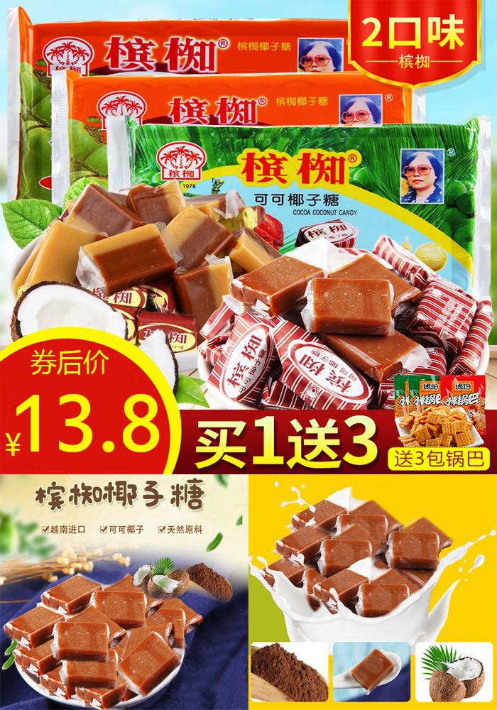 【推荐理由】越南槟椥可可椰子糖400g*2!海南风味的椰子糖,气香味正,诱人口舌!一颗融入口中,椰子香布满全口,优选材料,优良品质,甜蜜的味道,不只停留在回忆当中!