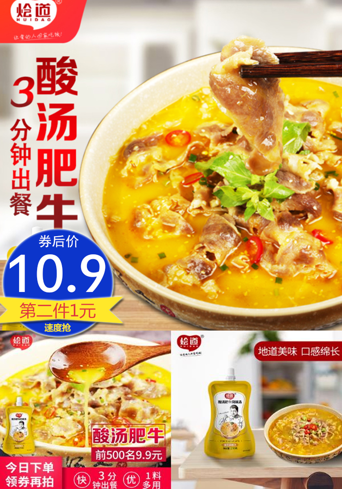【推荐理由】【第2件仅1元】【烩道】酸汤肥牛底料,真材实料,天然调色,一料多用,门店同款,无污染,品牌有保障,三分钟出餐,快抢~【赠送运费险】