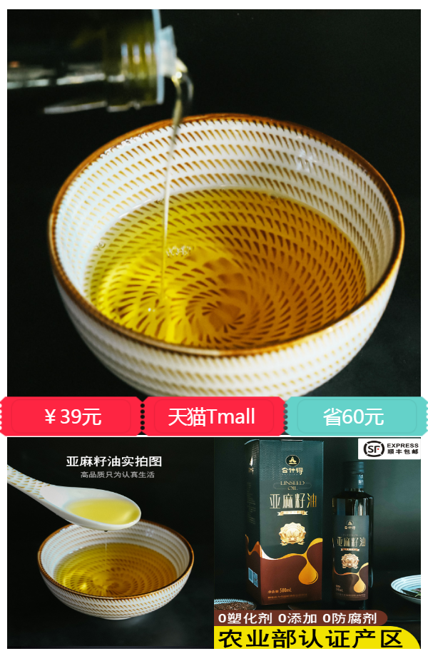 【推荐理由】【合什得】天然月子油,纯物理压榨,富含亚麻酸,冷榨初榨亚麻籽油,营养丰富,老人小孩孕妇都能食用,促进大脑育!居家必备,健康生活优选好品~【顺丰包邮】
