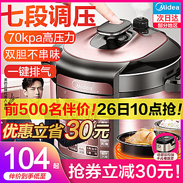 美的电压力锅家用智能5升大容量券后199元 去看看