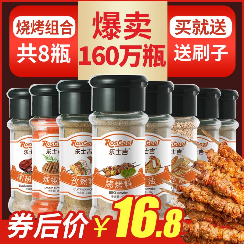 8瓶烧烤调料组合套装 全套孜然椒盐芝麻黑胡椒烤鱼烤肉烧烤撒料