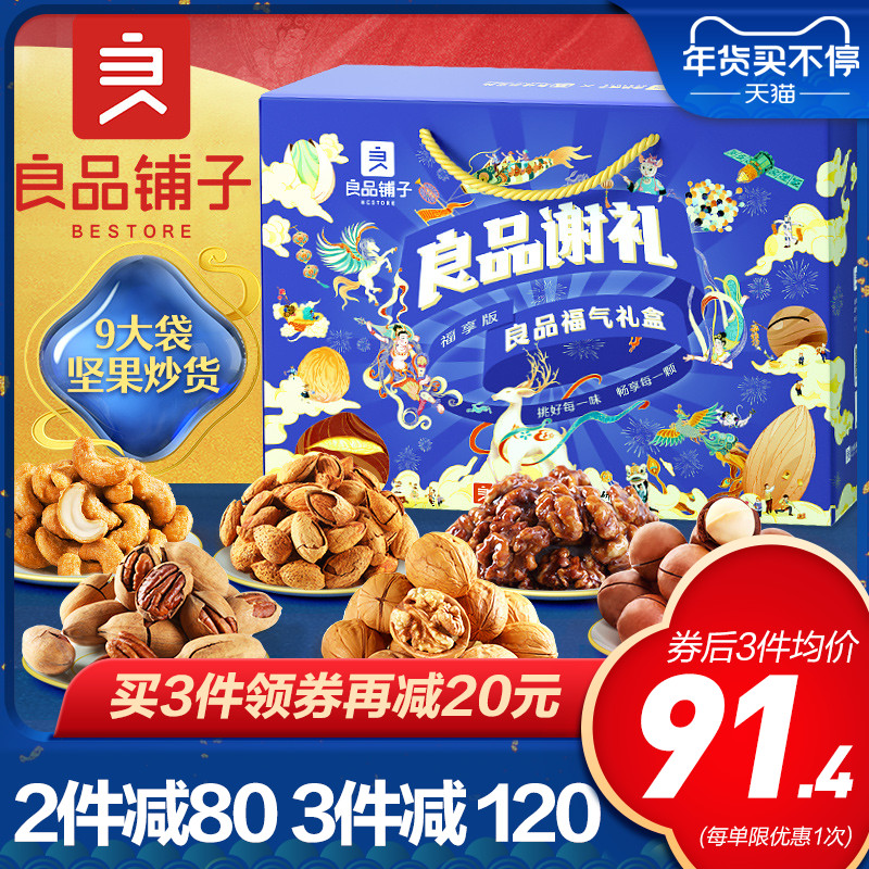 【良品铺子年货坚果大礼包1636g/9袋】每日干果零食混合整箱礼盒